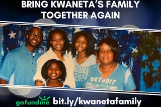 A message from V, a letter to Kwaneta's teenage self, Black August, and a fundraiser to bring Kwaneta's family together